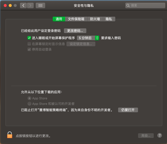 七、選擇app Store和被認可的的開發者選項,如下圖: